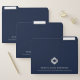 Keep your documents organized with our Modern File Folders with Custom Logo. The sleek navy blue background and silver geometric diamond logo enhance the appearance of your files, making them suitable for law firms and attorneys, consultants, advisors and any professional looking to organize their documents in style. Maintain a polished and organized workspace with this essential tool.