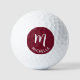 Customize golf balls with your initial monogram and name. Designed with a bold white script font on a deep red background.