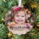 Modern Custom Merry Christmas Typography Photo Ornament Card