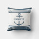 Modern Custom Name Blue Anchor Nautical Nursery Throw Pillow
