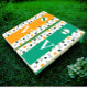 Natural Wood Cornhole Set, Yellow and Purple bags