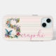 Modern Custom Name Floral Butterfly Initial Pink Case-Mate iPhone Case