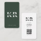Modern Custom Name Monogram Dark Green Qr Code Business Card