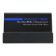 A modern style custom name thin blue line desk business card holder.