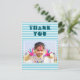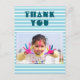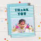 Modern birthday thank you postcard. Personalized thank you card for kids. Photo birthday thank you card - personalize it with your photo and your name. Modern white and blue stripes. It`s perfect for kids - great for thanking your friends and family for their birthday gifts and being on your party, or for any other occasion.