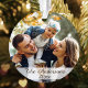 Personalize your holiday tree or home décor with a beautiful modern family themed acrylic ornament, featuring your family name and the year with your family photo on the front and back. This custom, unique design features an elegant calligraphy style font type in bronze color over a chic white gradient complimenting your families photo. The perfect housewarming addition to your holiday décor.