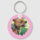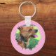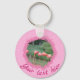 Modern girly custom text and 2 photo on pink pattern keychain. You can use one or two photos to personalise this item.