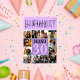 This modern and cute birthday card is perfect for any friend. It features a 12 photo collage grid, handwritten cursive script typography, and two-toned violet purple and pastel purple color blocks. The card says, "Happy Birthday, (Name), (Age)." It's fun, cool, unique, trendy, simple, minimalist, and girly; the perfect design to send to your best friend or family member.