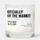 Celebrate love that lasts forever with this personalized “Officially Off The Market” candle in elegant modern script. Customizable with a name, it’s the perfect engagement, wedding, bridal shower, or bachelorette gift. A romantic keepsake for brides, grooms, wives, husbands, or couples. Thoughtful, meaningful, and beautifully designed to light up their forever moments.