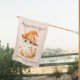 Cute Personalized Autumn Cat Personalized House Flag with a neutral background. Warm autumnal color schemed. Font is a dark brown shade. Text is customizable. Perfect for Halloween and Thanksgiving Season. Same graphic on both sides of the flag