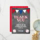 Cute baseball chalkboard birthday thank you card for kids to thank their friends and family. Simple thank you card for kids - a boy and a girl. The card has a baseball theme - two baseballs and red, blue and white bunting flags. The background is a trendy chalkboard and the back side of the card is red. Personalize the card with child`s name. You can also change the thank you message and write your own if you want.