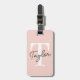 Modern Cute Blush Pink Monogram Name Girly Script Stylish Bag Tag