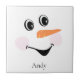 Modern Cute Custom Smiling Snowman Face With a Red Bowtie tile