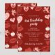 Plain white envelopes are included with paper invitations and will come to fit the invitation size you select. If you don’t need the envelopes, you may choose to not receive them by selecting the dropdown below "Envelopes" and choosing "None." If you’d like to have a design on your envelopes, you can browse all of these available envelopes to find the design that complements your Modern Cute Hearts Red 71st Birthday Invitations.