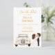 This elegant save-the-date wedding invitation features a timeless design centered around a beautifully illustrated antique wedding car, evoking a sense of vintage romance and charm. Beside it, a bride and groom share a tender kiss, capturing the joy and intimacy of the special moment. The text is presented in a rich marigold hue, adding warmth and sophistication while standing out gracefully against the background. Thoughtfully designed to be fully customisable, every detail—from names and dates to key information—can be tailored to reflect your unique celebration.
