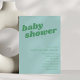 This baby shower invitation in light blue and green features playful retro typography with a modern, minimalist layout that feels cheerful and welcoming. The bold headline lettering adds personality while the simple design keeps the focus on the celebration details. Designed to suit a wide range of baby shower styles, from relaxed gatherings to thoughtfully planned events. Personalize the name, date, time, and location to create an invitation that feels polished, memorable, and easy for guests to read.