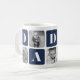 Customize this cute modern mug design to celebrate a new dad this Father's Day! Design features alternating squares of photos and deep navy blue letter blocks spelling "daddy" in modern serif lettering. Add five of your favorite square photos (perfect for Instagram!) using the templates provided.