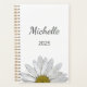 Modern floral 2025 planner, with a white daisy and elegant script design. With gray customizable lettering, you can add your own name and year. Great for adding a botanical touch to staying organized.