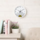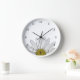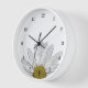 Rustic County floral clock with a modern white daisy design on a white background. Black numbers give you the time giving you a botanical addition to your home decor.