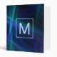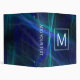 This modern binder features dark abstract fractal mist in black, blue, and green. Customize it with a monogram and text on the spine in icy blue color.