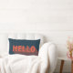 Modern Dark Blue and Orange Hello Typography Lumbar Pillow