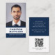 Modern dark blue and white add photo QR code Business Card