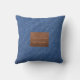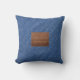 Modern Dark Blue Denim Jeans Texture Leather Patch Throw Pillow