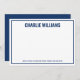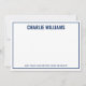 Modern, blank notecard with your name and custom text in bold fonts and a thick border. Dark blue text on a white background. You can change all colors, move and resize elements with the design tool.