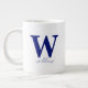 Modern monogram design in a bold serif typography is layered underneath a name in a handwritten-style script font. The same design automatically appears on both sides when you personalize it. You can change the colors if you like. Great gift for your own desk, holidays, work coffee events, wedding parties and more!
