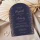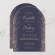Modern Dark Blue Rose Gold Glitter Arch Wedding Invitation