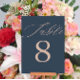 modern Dark Blue & Rose Gold Wedding Table Number