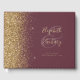 This elegant wedding guest book features a left-hand border of faux gold glitter on a dark burgundy background. Easily customize the gold-colored text with the names of the bride and groom in whimsical handwriting calligraphy over a large ampersand. Add additional text of your choice to the front and spine.