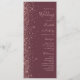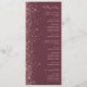 The left-hand edge of this elegant modern wedding program features a rose gold faux glitter design. The customizable text combines rose pink handwriting, copperplate and italic fonts on a dark burgundy background.