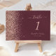 Modern Dark Burgundy Rose Gold Glitter Wedding Table Number