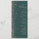 The left-hand edge of this elegant modern wedding program features a rose gold faux glitter design. The customizable text combines pale rose colored handwriting, copperplate and italic fonts on a dark green background.