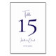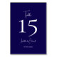 This elegantly designed Table Number Card features a navy background and white text on one side, with white background and navy script on the other side, making it a truly modern design, perfect for your wedding style. Personalize the details, making it a memorable keepsake for guests, ensuring it stands out as a cherished memento.
