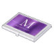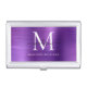 Modern Dark Purple Brushed Metal Monogram Script Business Card Case