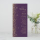 The left-hand edge of this elegant modern wedding program features a gold faux glitter design. The customizable text combines gold-colored handwriting, copperplate and italic fonts on a dark purple background.