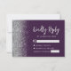 Modern Dark Purple Silver Glitter Edge Script RSVP Card