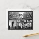 Customize this stylish modern horizontal Save the Date wedding postcard designed with bold white text on dark grey / black. Replace the four template image collage with your favorite 4 photos. One of the images is wide horizontal panoramic photo and the other three are smaller. For best results use high resolution photos. Also change all the template information on both sides with your own. This design has a wording: "We're getting married! (With your date of marriage) And would love for you to save the date to be able to share in our special day. Formal invitation to follow." you can change the words with your own.