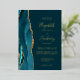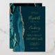 Modern Dark Teal Blue Gold Agate Wedding Foil Invitation