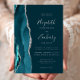 Modern Dark Teal Silver Agate Wedding Foil Invitation