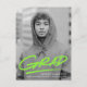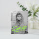 Modern graduation party invitation postcards featuring the graduate's vertical senior photo with "Grad" in lime green handwritten lettering with an underline dash below. Personalize the front of the photo graduation party postcard by adding the graduate's name, school name, and graduation year. The postcard reverses to display your return address and graduation party details.