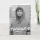 Modern graduation thank you cards featuring the graduate's vertical photo on the front with "Thanks" in white handwritten lettering with a dash below. Personalize the photo graduation thank you card by adding the graduate's name, school name, and graduation year. The inside of the card provides space for your typed or handwritten message. The back of the folded graduation thank you card features a black and white dashed brushstroke design.
