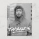 Modern graduation thank you postcards featuring the graduate's vertical photo with "Thanks" in white handwritten lettering with a dash below. Personalize the photo graduation thank you postcard by adding the graduate's name, school name, and graduation year. The back of the postcard displays your return address and thank you message.