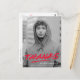 Modern graduation thank you postcards featuring the graduate's vertical photo with "Thanks" in red handwritten lettering with a dash below. Personalize the photo graduation thank you postcard by adding the graduate's name, school name, and graduation year. The back of the postcard displays your return address and thank you message.