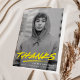 Modern graduation thank you cards featuring the graduate's vertical photo on the front with "Thanks" in yellow handwritten lettering with a dash below. Personalize the photo graduation thank you card by adding the graduate's name, school name, and graduation year. The inside of the card provides space for your typed or handwritten message. The back of the folded graduation thank you card features a yellow and white dashed brushstroke design.