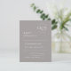 This soft warm grey modern wedding invitation reply card puts guest's reply info and reception meal choice in large, clean line, white typography and a unique detail with the the R.S.V.P. before date in a chic seal style layout. Part of the Modern Date Seal invitation suite.