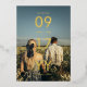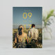 Double sided save the date card with a modern clean gold foil typography design focused on the wedding date atop a photo of the happy couple. Add three more photos to the back in a clean collage. Clean save the date template card personalized with photos.