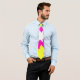 I bought this tie for a cosplay of Haruhi Fujioka for Halloween and anime conventions. It feels very nice and silky. It's my first tie ever, and I'm a pretty big fan since I always wanted a tie. It was longer than I expected it to be (quite a plus), but the purple stripe was also thinner than I expected it to be (a slight bit of a downer, but I don't mind too much). I had never used Zazzle before, but I am very impressed with the shipping time. I was looking for places to get a tie like this so last minute since the ties like this on Amazon were incompatible with Prime. Thus, I ended up here. I paid for express shipping, expected delivery October 30-31, and it arrived in the morning on the 30th. Very impressed. I might just use Zazzle again. The print job was okay. The colors were perfect, but as you can see in the pictures, the stripe was a little off-center, and there was a kink in the stripe around where it transitions from the wide end to the thin end. It should work perfectly for my cosplay, but it was a little too carelessly print to be a very professional tie.